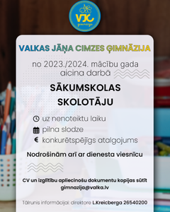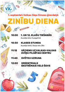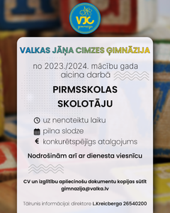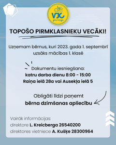 Uzņemam bērnus, kuri 2023. gada 1. septembrī uzsāks mācības 1. klasē. »»»