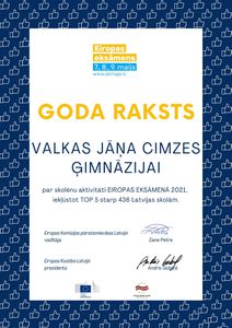 Valkas Jāņa Cimzes ģimnāzijas oficiālā tīmekļavietnes adrese: www.vjcgimnazija.lv