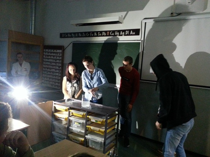 Sākumā, iepazīstoties viens ar otru, pastāstījām nedaudz par sevi. Tad mēs tikām iepazīstināti ar ķīmijas laboratorijas piederumiem un traukiem, bet vēlāk šīs zināšanas vajadzēja izmantot, atpazīstot priekšmetus, kas tika piestiprināti katram no mums uz muguras. Šī aktivitāte arī bija, lai raisītu starp mums draudzību un vienotību. Pēc šī uzdevuma sekoja darbs komandās. Vispirms mums bija jāizveido pēc iespējas augstāks un stabilāks tornis no makaroniem. Ne visām komandām tas veicās, tikai divām komandām konstrukcija tika ieskaitīta. Pēdējā uzdevumā katrai komandai citiem bija jāparāda kāds ķīmijas vēstures stāsts.