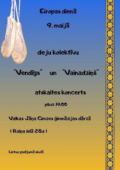 9.maijā plkst. 19.00 deju kolektīva "Vendīgs" un "Vainadziņš" atskaites koncerts.