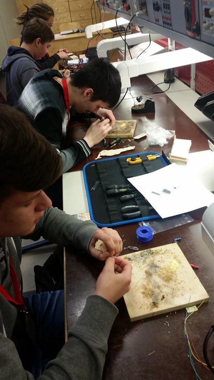 Elektronikas pulciņa dalībnieki 8.decembrī piedalījās Elektronikas dienās, kas notika RTK. Šoreiz skolēnu elektronikas darbnīcā bija jāsalodē elektroniska shēma, kas nodrošināja gaismas diožu mirgošanu. Šoreiz uzdevums bija interesants ar to, ka šīs gaismiņas bija jāizvieto uz automašīnas modeļa, kas tika izveidots no saplākšņa detaļām. Mūsu skolas skolēniem Denisam (11.b) un Kristiānam (9.a) šis uzdevums bija jāveic nepilnu trīs stundu laikā. Starp daudziem Latvijas pulciņu elektronikas izstādes darbiem bija arī Denisa izveidotā gaismas mūzikas iekārta. Skolēniem šī diena deva nozīmīgu pieredzi.