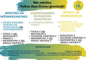 Informācija par uzņemšanas kārtību, norisi, nepieciešamajiem dokumentiem būs pieejama skolas mājaslapā.