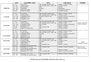 Raiņa ielas sporta halles nodarbību grafiks
